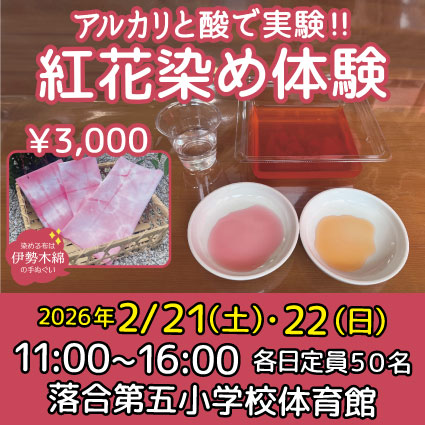 費 用:4,400円(染めるものは別、持ち込み可。絹のものを推奨)